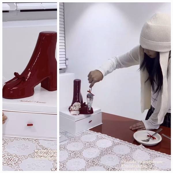 宝子们,Jennie又给大家整活儿了!这次她的创意简直让人叹为观止——靴子也能吃?11月17日,Jennie在自己的SNS上传了一段切靴子形状巧克力蛋糕的视频,瞬间引爆全网。这哪是吃甜品啊,分明是艺术show嘛!