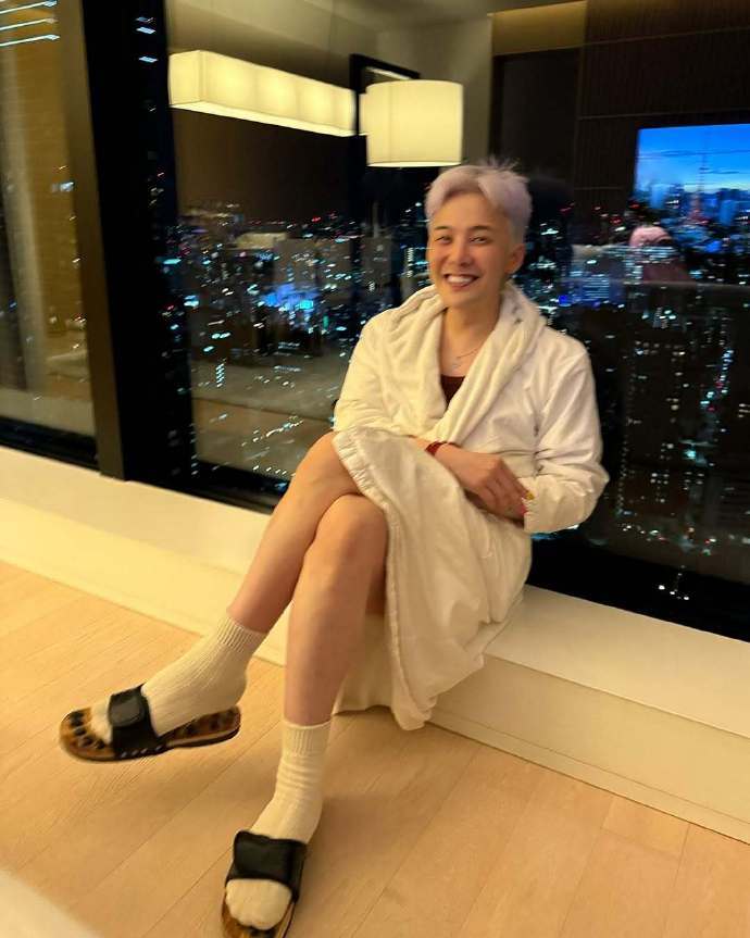 据韩国媒体5月9日报道,权志龙在踏入东京巨蛋的前夜,静静地笑了。身着浴袍,搭配袜子和拖鞋,那个看似平凡却又非凡的夜晚,空气中弥漫着只有他才能营造的氛围。9日,权志龙通过自己的私人账号公开了在酒店房间拍摄的近况照片。